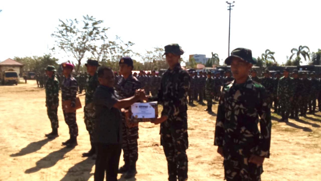 Apel diakhiri dengan penyerahan sertifikat penghargaan kepada Satgas TNI sebagai bentuk apresiasi atas pengabdian mereka selama bertugas di Aceh Tamiang.