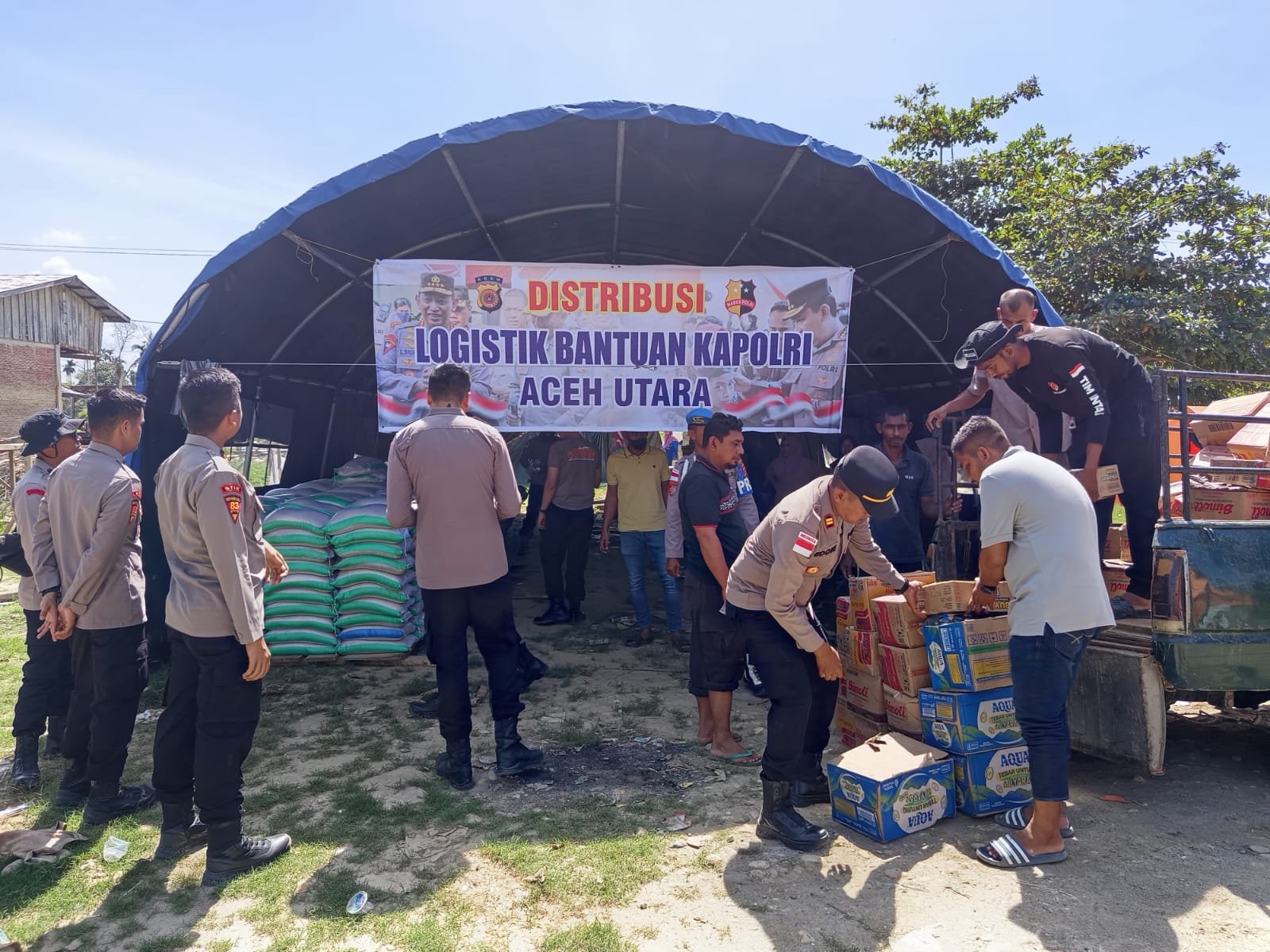 LHOKSUKON – Polres Aceh Utara mulai mendistribusikan bantuan logistik dari Kepolisian Negara Republik Indonesia kepada masyarakat terdampak bencana di wilayah Kabupaten Aceh Utara secara bertahap.