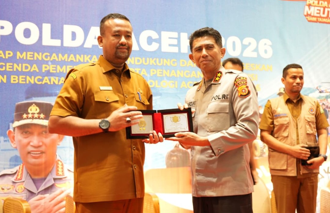 Kapolda Aceh dalam rangkaian kegiatan Rapim Polda Aceh 2026, memberikan penghargaan kepada personel Polri, mahasiswa STIK Lemdiklat Polri, serta elemen masyarakat yang berkontribusi aktif dalam penanganan bencana di Provinsi Aceh.