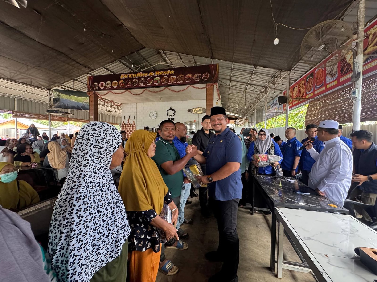 Bupati Aceh Tamiang, Irjen Pol. (Purn.) Drs. Armia Fahmi, M.H., menghadiri Rapat Kerja Cabang (Rakercab) DPC Partai Demokrat Kabupaten Aceh Tamiang yang dirangkaikan dengan buka puasa bersama dan penyerahan bingkisan kepada masyarakat di FN Coffe, Desa Kampung Dalam, Jumat (27/02/26).