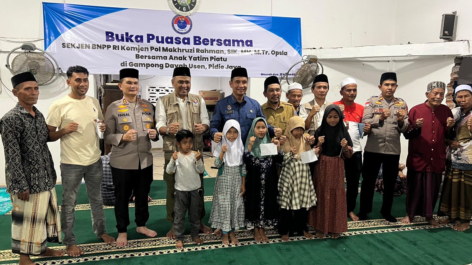 Meureudu – Kapolres Pidie Jaya AKBP Ahmad Faisal Pasaribu mendampingi Sekretaris Jenderal PNPP RI Komjen Pol. Makhruzi Rahman dalam kegiatan buka puasa bersama dan santunan kepada anak yatim piatu di Meunasah Gampong Dayah Usen, Kecamatan Meurah Dua, Kabupaten Pidie Jaya, Selasa 17 Maret 2026.