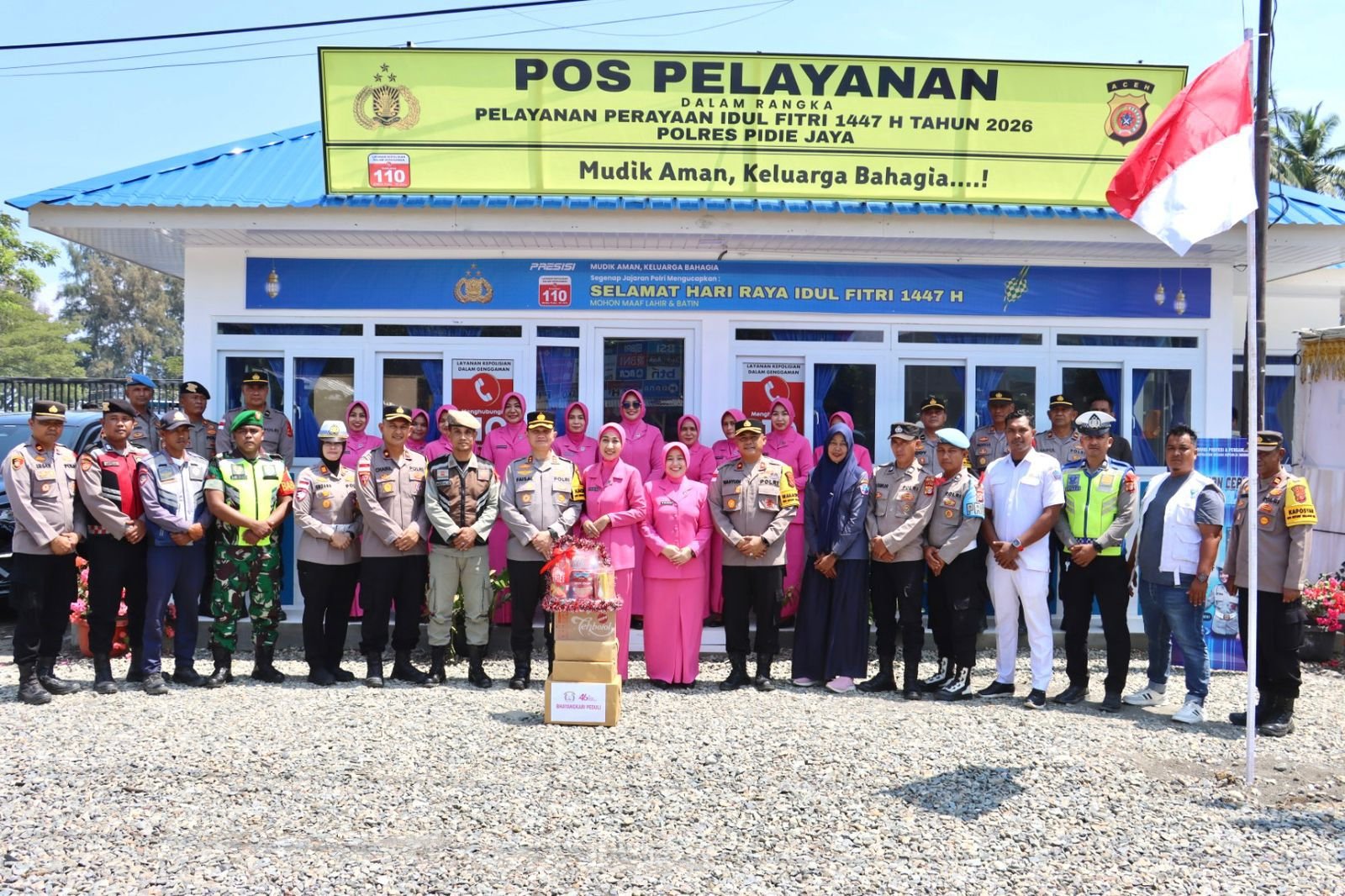 Meureudu – Kapolres Pidie Jaya AKBP Ahmad Faisal Pasaribu mendampingi Ketua Bhayangkari Cabang Pidie Jaya Ny. Dewi Faisal Pasaribu melaksanakan kunjungan ke Pos Pelayanan (Posyan) dan Pos Pengamanan (Pos Pam) Operasi Ketupat 2026 di wilayah hukum Polres Pidie Jaya, Kamis 19 Maret 2026.