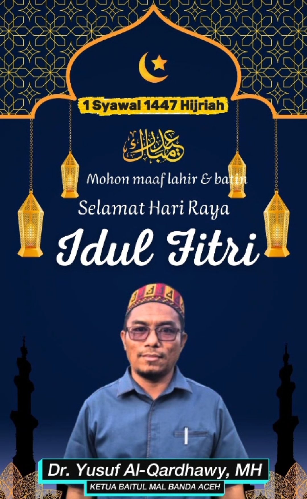 Banda Aceh –Menyambut datangnya Idulfitri 1 Syawal 1447 Hijriah, Ketua Baitul Mal Kota Banda Aceh, Dr. Yusuf Al-Qardhawy, menyampaikan ucapan selamat hari raya kepada seluruh umat Muslim, khususnya masyarakat di Banda Aceh.