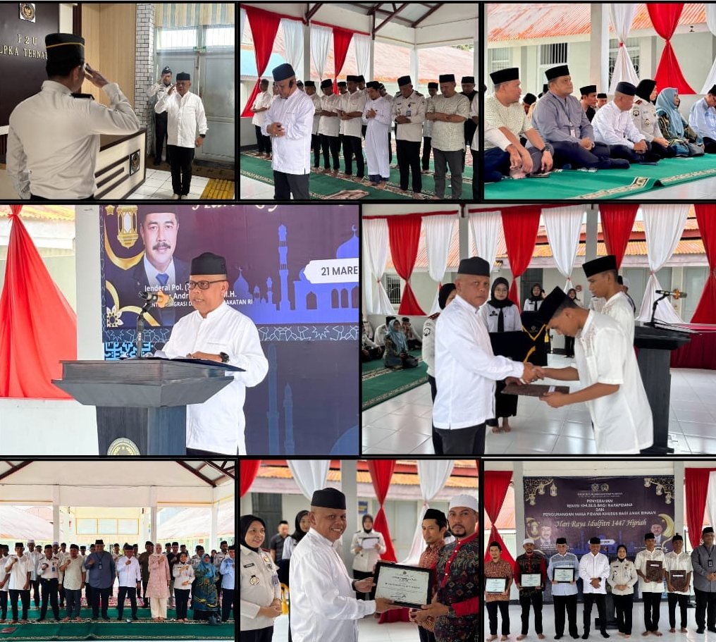 MALUT – Momentum Hari Raya Idulfitri 1447 Hijriah dimanfaatkan sebagai ajang pembinaan dan pemberian hak bagi warga binaan di LPKA Kelas II Ternate. Sebanyak 613 narapidana dan anak binaan menerima Remisi Khusus (RK) serta Pengurangan Masa Pidana (PMP) usai pelaksanaan Sholat Idulfitri, Sabtu (21/3/2026).