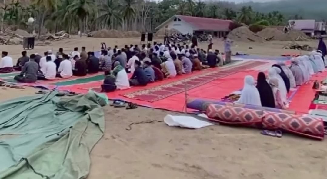 Pelaksanaan Sholat Idulfitri berlangsung khidmat. Barisan jamaah tersusun rapi, diiringi lantunan takbir yang menggema dari berbagai penjuru. Di sela-sela ibadah, suasana haru tak terbendung saat doa bersama dipanjatkan. Banyak jamaah menitikkan air mata, memohon kekuatan, ketabahan, dan pemulihan bagi kampung halaman mereka yang masih berjuang bangkit.