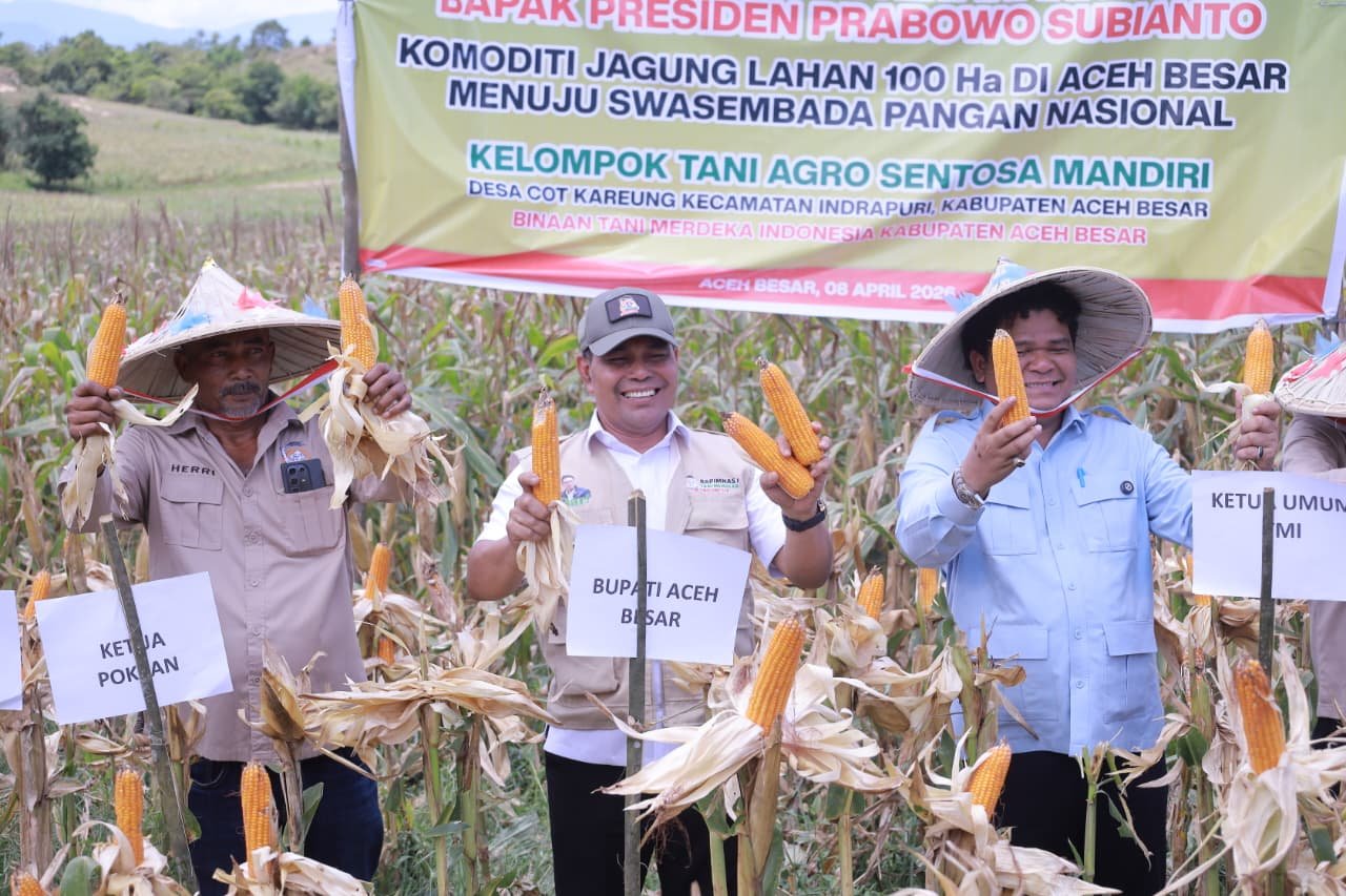 Panen raya tersebut merupakan hasil pengelolaan lahan oleh Kelompok Tani Agro Sentosa Mandiri Tani di Desa Cot Kareung serta Kelompok Tani Agro Nusantara Maju di Desa Meusalee, yang selama ini menjadi bagian dari pengembangan sentra jagung di wilayah Aceh Besar.