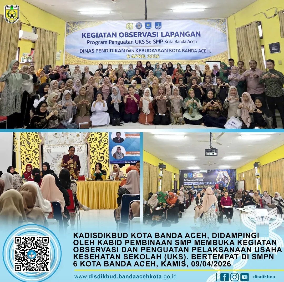 BANDA ACEH – Komitmen membangun generasi sehat dan berdaya saing terus diperkuat oleh Pemerintah Kota Banda Aceh melalui sektor pendidikan. Salah satu langkah konkret tersebut diwujudkan oleh Dinas Pendidikan Kota Banda Aceh dengan menggelar kegiatan observasi dan penguatan Usaha Kesehatan Sekolah (UKS) di SMP Negeri 6 Banda Aceh, Kamis (9/4/2026).
