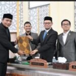 BANDA ACEH – Ketua DPRK Banda Aceh, Irwansyah, menerima dokumen Rancangan Kebijakan