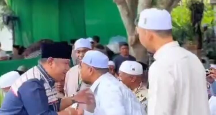 Aceh Besar – Hujan lebat mengguyur Simpang Aneuk Galong, saat rombongan Pj