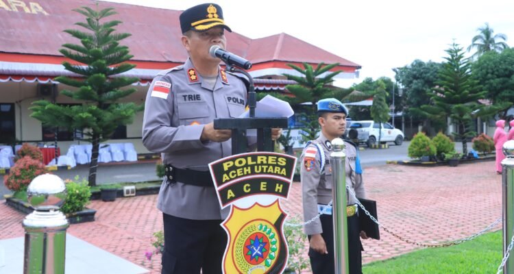 LHOKSUKON – Polres Aceh Utara menggelar upacara laporan kenaikan pangkat personel Polri