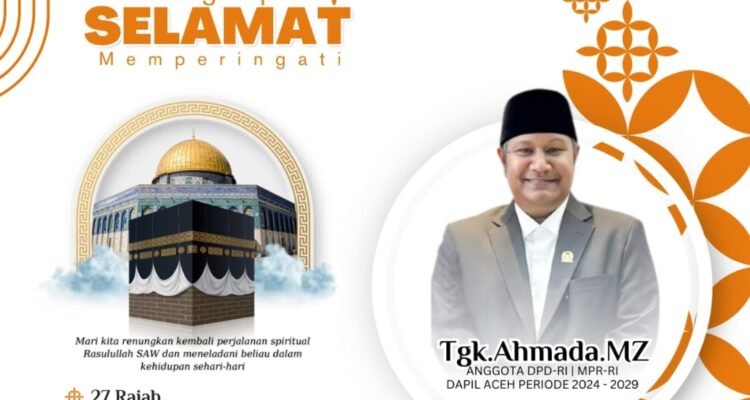 Tgk. Ahmada Ajak Umat Islam Meneladani Rasulullah pada Peringatan Isra Mikraj 1447 H Breakingnews|15/01/2026oleh mul yadi Banda Aceh — Anggota Dewan Perwakilan Daerah Republik Indonesia (DPD RI) asal