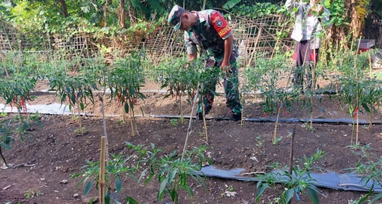 Babinsa Peukan Bada Bersama Petani Rawat Tanaman Cabai