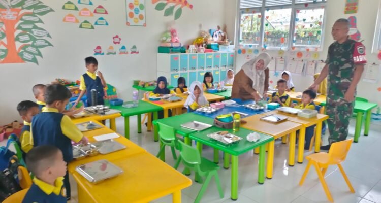 Babinsa Peukan Bada Dampingi Distribusi MBG untuk Anak PAUD