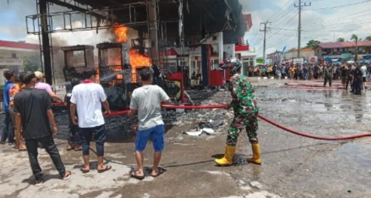 Babinsa Subulussalam Berjibaku Bantu Padamkan Kebakaran di SPBU