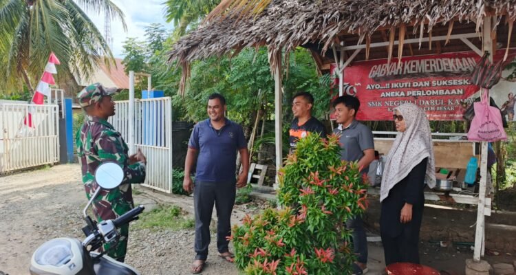 Aceh Besar – Babinsa Koramil 20/Darul Kamal, Serka Osriadi, melaksanakan komunikasi sosial