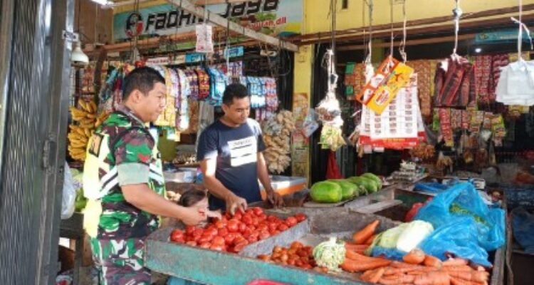 Pantau Stabilitas, Babinsa Blang Bintang Cek Harga Bahan Pokok di Pasar Kodim 0101|24/08/2025oleh mul yadi Aceh Besar – Babinsa Koramil 21/Blang Bintang, Koptu A. Arief, melaksanakan pengecekan