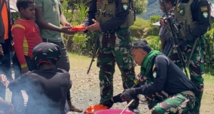 Satgas Pamtas RI-PNG Kewilayahan Yonif 112/DJ Kodam IM berbagi di puncak Jaya
