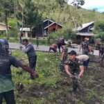 Papua Tengah – Pos Tinggi Nambut Satgas Yonif 112/DJ bersama rakyat melaksanakan