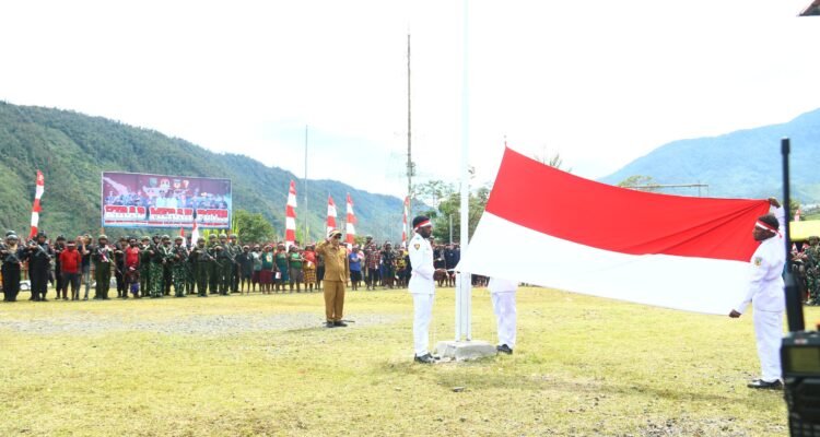 Satgas Yonif 112/DJ menghadiri dan mengamankan Kirab Merah Putih di Puncak Jaya
