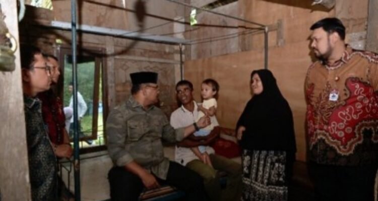 Aceh Besar – Hujan lebat mengguyur Simpang Aneuk Galong, saat rombongan Pj