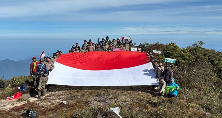 Tim Ekspedisi Hari Bhayangkara Bentangkan Bendera Merah Putih di Puncak Gunung Leuser